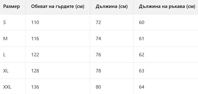 Универсален стил: Това късо яке е подходящо за различни поводи, от небрежни излизания до полуофициални партита. Универсалността му означава, че се съчетава перфектно с дънки, каки панталони или официални панталони. Независимо от повода, ще създадете елегантен и изтънчен вид.