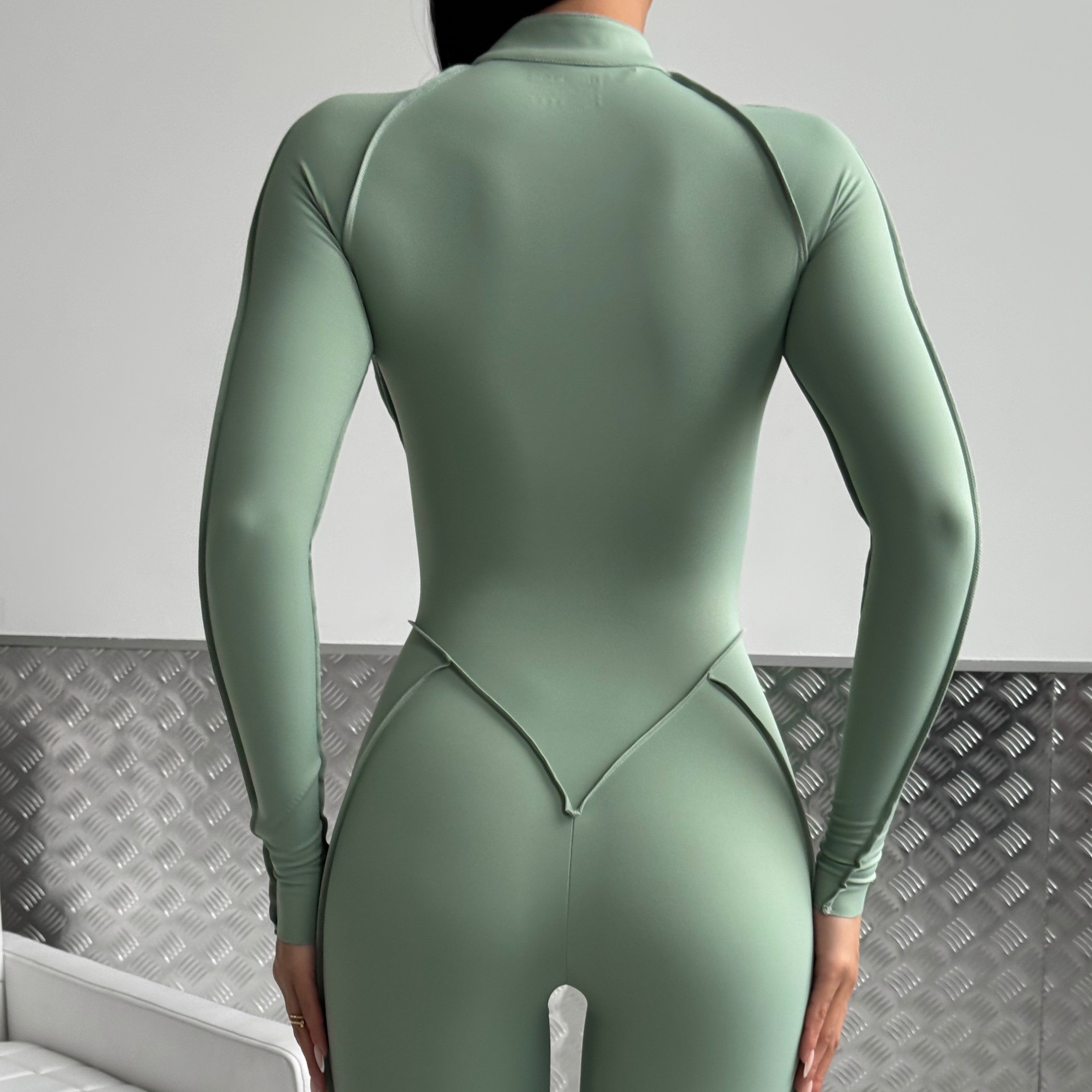 Този гащеризон е със затворен гръб и акцентни шевове, които ласкаят фигурата ви. За комфорт по време на тренировка, горната част е с подвижни чашки.
